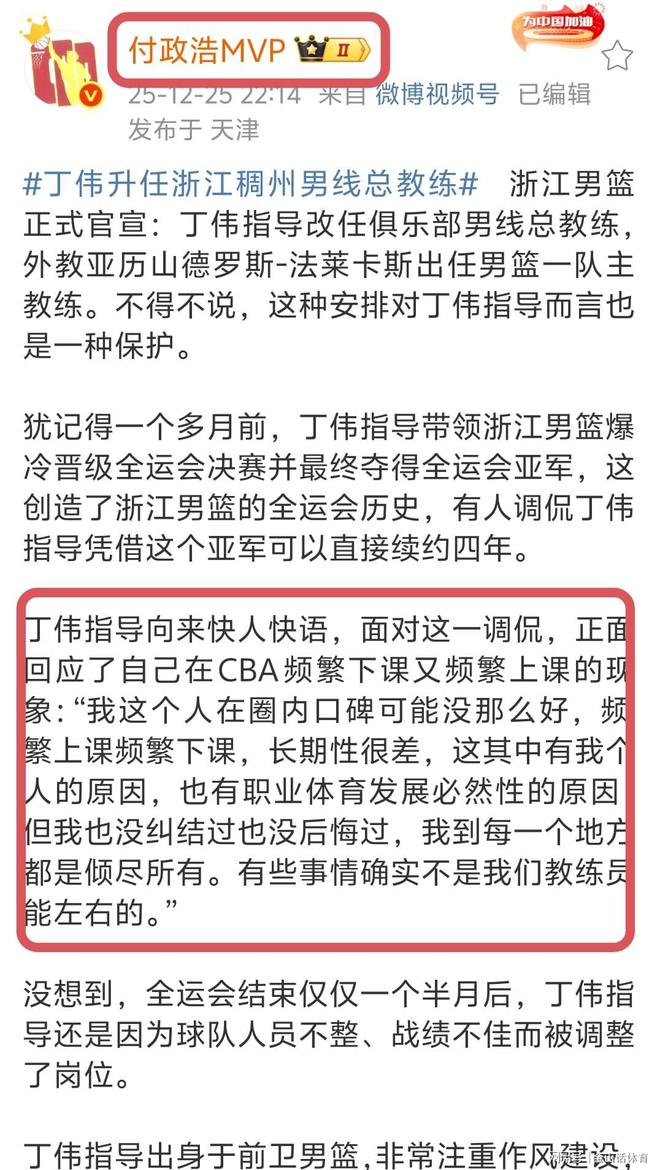 第8次下岗!丁伟回应频繁“下课”原因,付政浩谈丁团长新职务