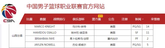 CBA官方:山西取消场均0.9分黑根斯注册新外援奈特完成注册